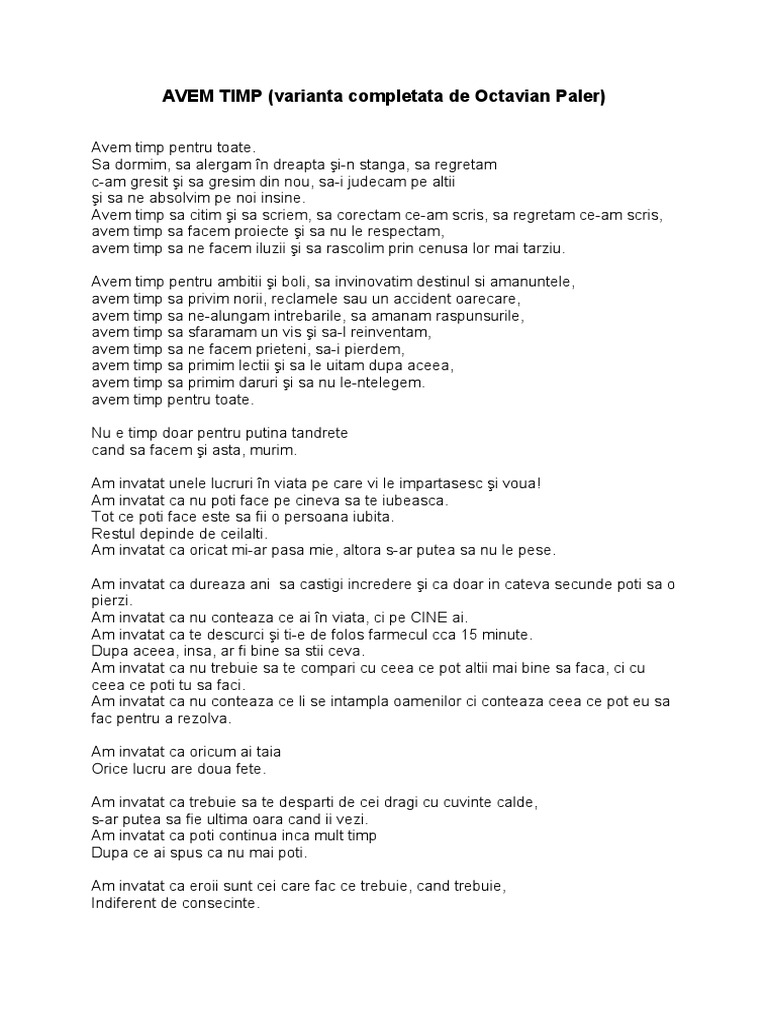 Avem Timp De Octavian Paler