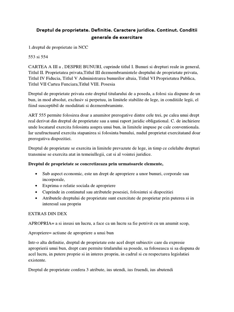 Dreptul De Proprietate Definitie Caractere Juridice Continut Conditii Generale De Exercitare