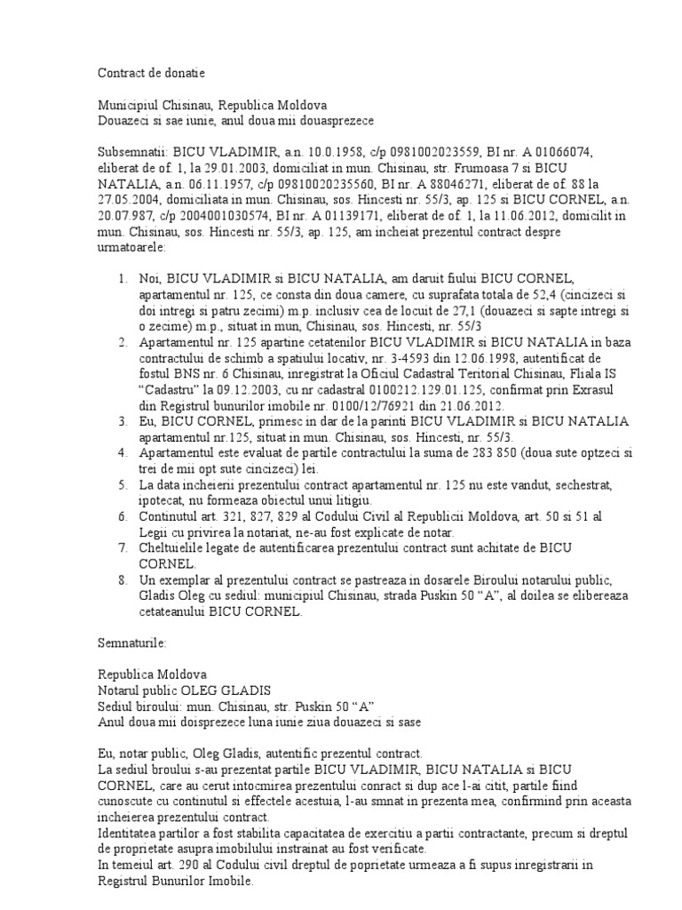 Contractul De Donaţie Drept Md