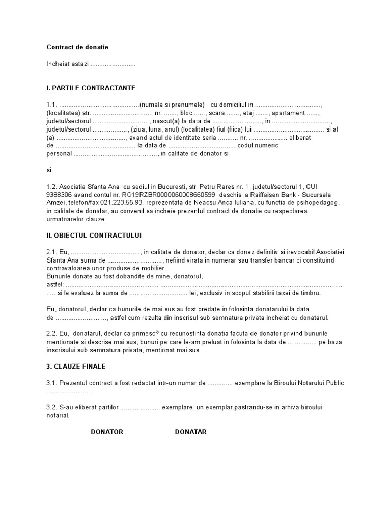 Contract De Donatie