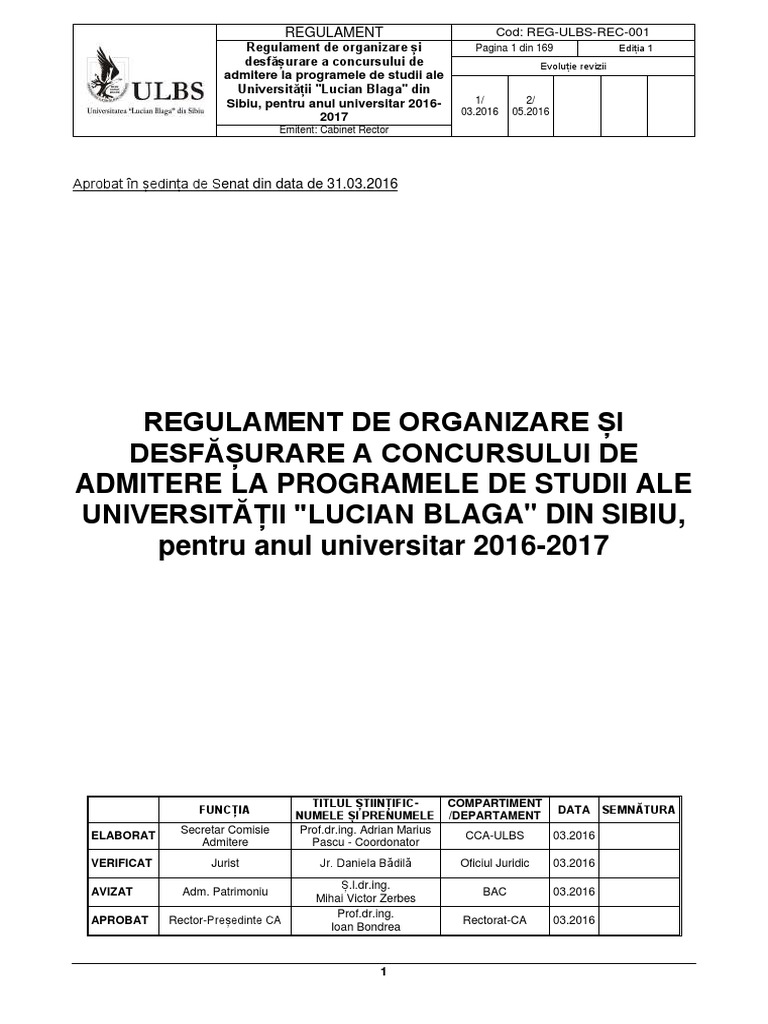Universitatea Lucian Blaga Din Sibiu Admitere 2016