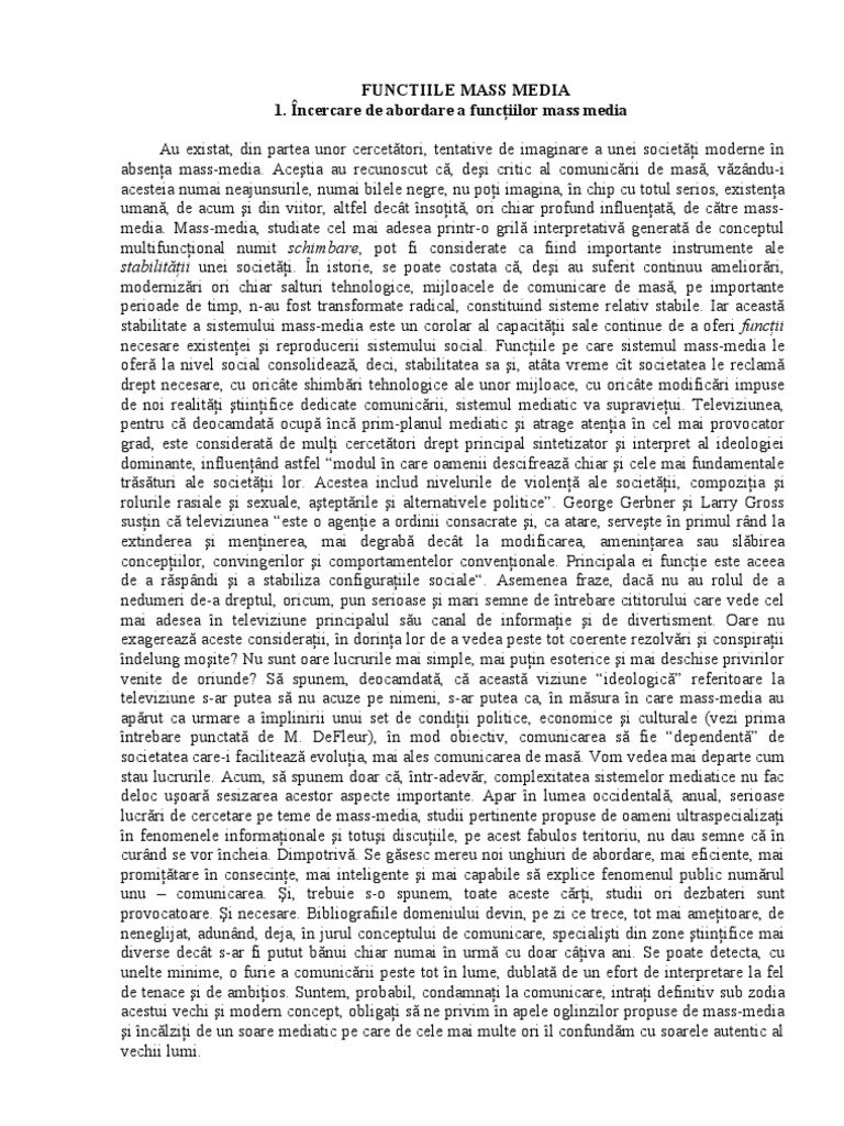 Functiile Mass Media 1 Incercare De Abordare A Funcţiilor Mass Media