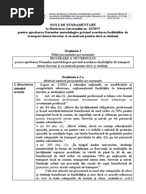 Notă De Fundamentare La Hotărarea Guvernului Nr 42 2017 Pentru Aprobarea Normelor Metodologice Privind Acordarea Facilităţilor De Transport Intern Feroviar Si Cu Metroul Pentru Elevi și Studenți