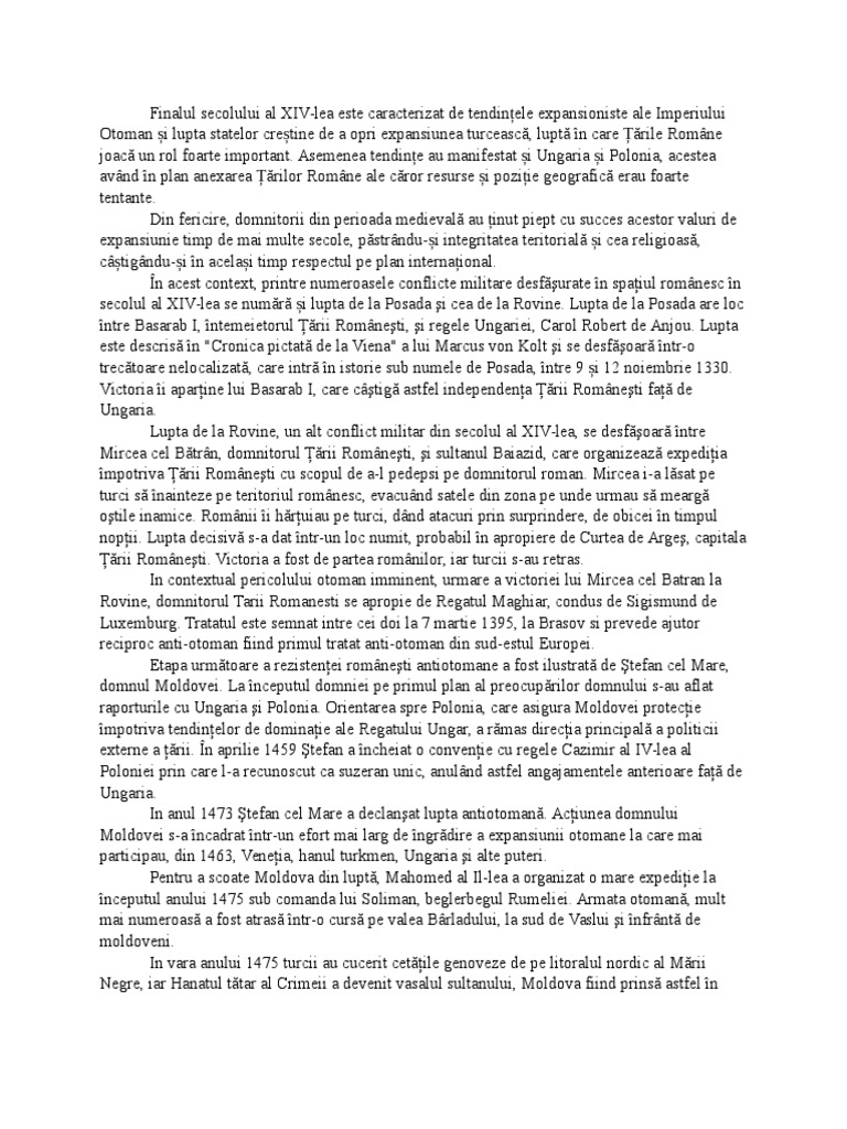 Rolul Spatiului Romanesc In Relatii Internationale In Sec 14 18