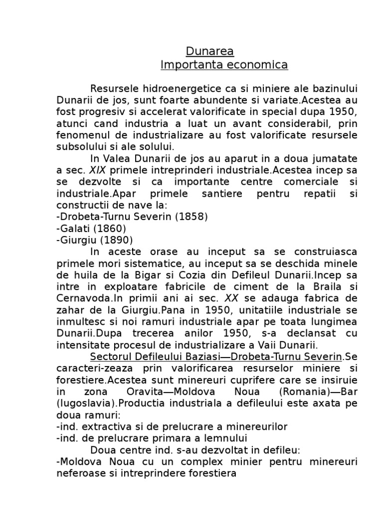 Proiect Dunarea Si Importanta Ei Pentru Romania Ecologie 234264