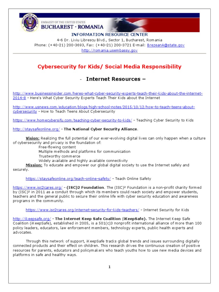 Cybersecurity For Kids Resources Doc Online Safety Privacy Computer Security