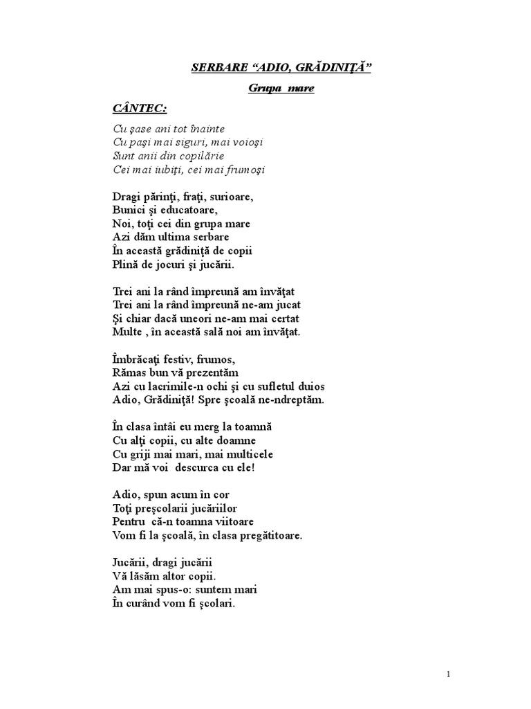 Adio Gradinita Docx Document
