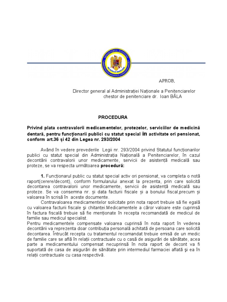 Procedura Anp Privind Decontarea Medicamentelor Personalului