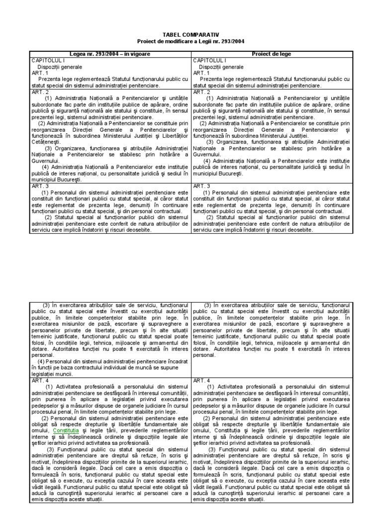 Proiect De Modificare A Legii 293 2004 Tabel Comparativ 14 Iulie 2010
