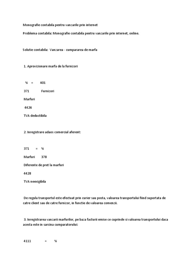 Monografie Contabila Pentru Vanzarile Prin Internet