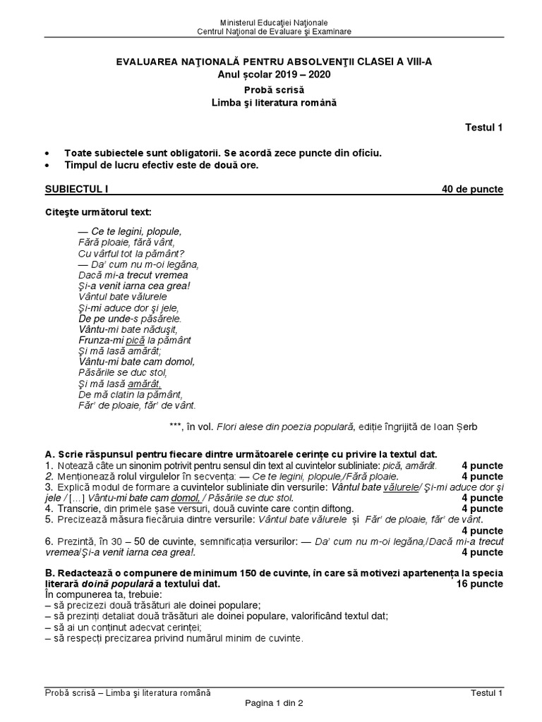Evaluarea Națională 2015 Prima Probă Vezi Ce Subiecte Au Primit Elevii La Limba și Literatură Romană Hunedoaramea