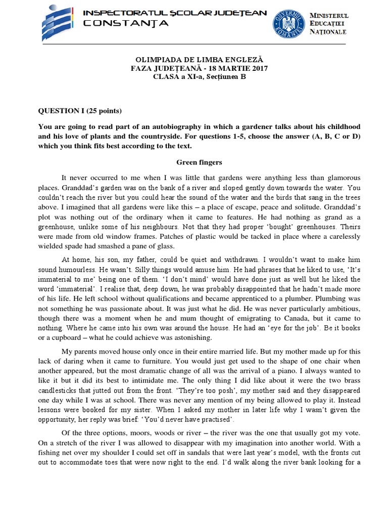 Olimpiada Engleza 2017 Cl A 11a Pdf Languages Fiction Literature
