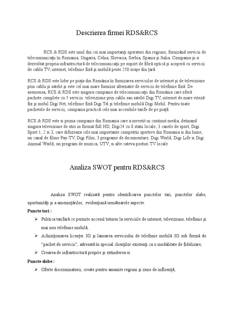 Proiect Marketing Strategic Sc Rds Rcs Sa Marketing 301054