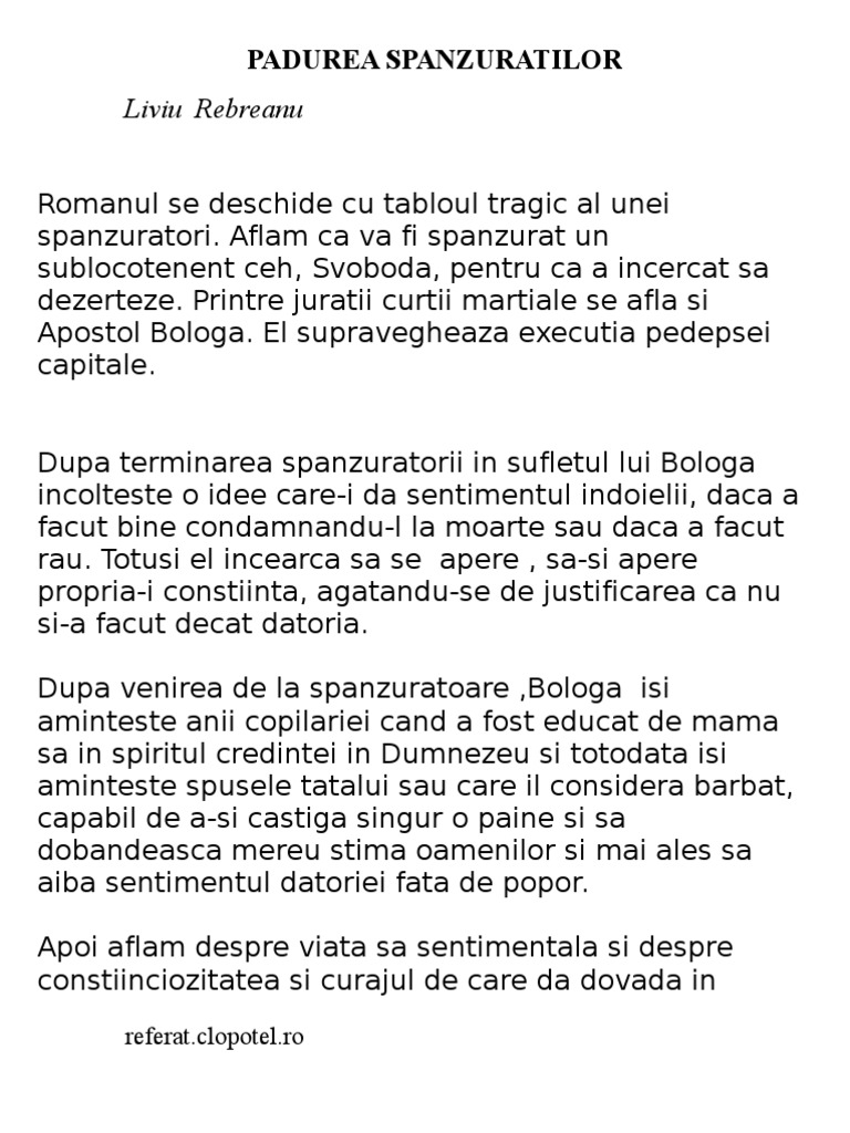 Liviu rebreanu reține doar elementele prevestitoare parcă de spaimă de deznădejde. Paperrcuts rated it it was amazing review of. Padurea spanzuratilor de liviu rebreanu aspecte introductive recapitulare sumarul lectiei continuturi liviu rebreanu biografie liviu rebreanu opere romanul padurea spanzuratilor incadrare in context roman realist de. Nu am crezut ca liviu rebreanu poate sa scrie asa de bine dar padurea spanzuratilor este super.