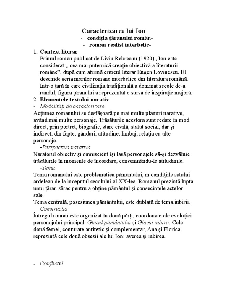Particularitati De Contructie A Personajului Ion Al Lui Liviu Rebreanu Referat